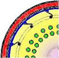 刮膜片型式為徑向滑動型,它由WFE-VA 刮膜蒸發(fā)器演變而來;刮片鑲嵌在轉(zhuǎn)子的U導(dǎo)槽內(nèi),當(dāng)轉(zhuǎn)子旋轉(zhuǎn)是時刮片受離心力的作用從U導(dǎo)槽內(nèi)徑向滑到加熱壁面。導(dǎo)槽均勻分布在轉(zhuǎn)子圓周(見圖1),轉(zhuǎn)子呈鼠籠型,在導(dǎo)槽之間設(shè)有動態(tài)汽液分離裝置,防止液滴的飛濺及夾帶。